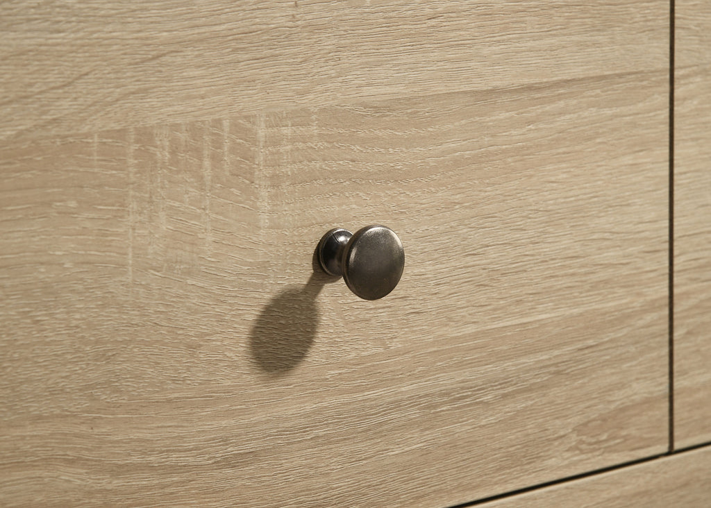 Effortlessly elegant, this six-drawer dresser with mirror lends a serene charm to any bedroom. Framed in a soft light oak finish, its clean lines are paired with antique nickel hardware for a touch of refinement. Built from engineered wood with a scratch-resistant laminate veneer, it’s made for lasting beauty. Six English dovetail drawers glide smoothly on metal extension glides, while the matching mirror completes the ensemble with timeless simplicity. Key Features: • Six-drawer dresser with mirror in light oak finish and clean, modern rectangular form • Antique nickel hardware adds contrast and elegance to each drawer face • All drawers feature English dovetail joinery for added strength and durability • Smooth 35mm metal extension glides ensure easy, full-access drawer function • Crafted from engineered wood with a scratch-resistant laminate veneer surface • Framed rectangular mirror pairs beautifully with the dresser’s streamlined silhouette
