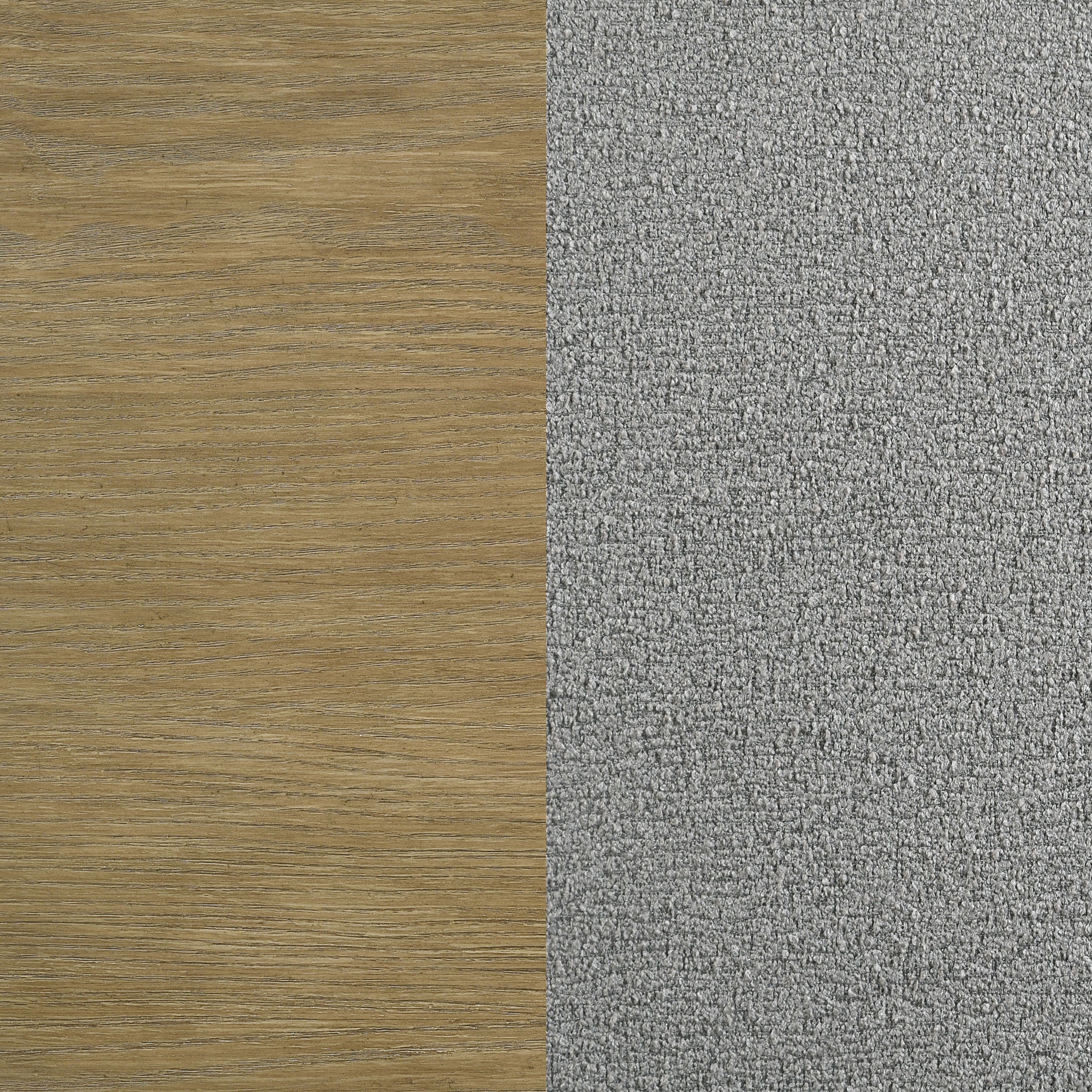 Create a relaxing atmosphere with the clean lines and neutral, wire-brushed, sand wash finish of this coastal bedroom set. A grey fabric padded headrest and footrest along with aged brass hardware throughout each piece offer lovely modern glam accents. Matching storage pieces and round framed mirror complete the set, offering thoughtful touches like felt-lined top drawers and a built-in tray.