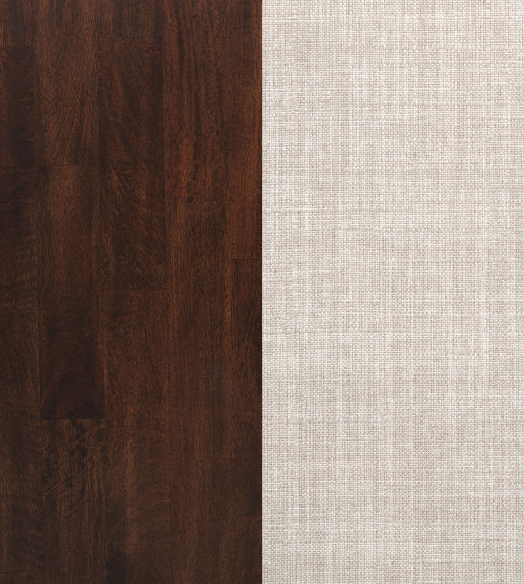This five-piece dining set invites connection with timeless charm and everyday warmth. The round table, finished in rich dark brown, provides an intimate setting for shared meals and easy conversation. Four coordinating chairs feature gracefully curved double cross-backs and plush light tan upholstered seats that offer gentle support. Crafted from solid rubberwood, mango veneer, and soft-touch fabric, this set brings cozy elegance to kitchens, breakfast nooks, or dining spaces where comfort meets classic design. Key Features: • Five-piece dining set with round table and four cross-back upholstered dining chairs • Dark brown wood finish offers depth and warmth with classic appeal • Chairs feature gently curved double cross-backs for style and support • Light tan fabric seats are foam cushioned for comfortable daily dining • Crafted from solid rubberwood, mango veneer, engineered wood, and fabric • Perfect for breakfast nooks, kitchens, or small dining spaces with timeless style