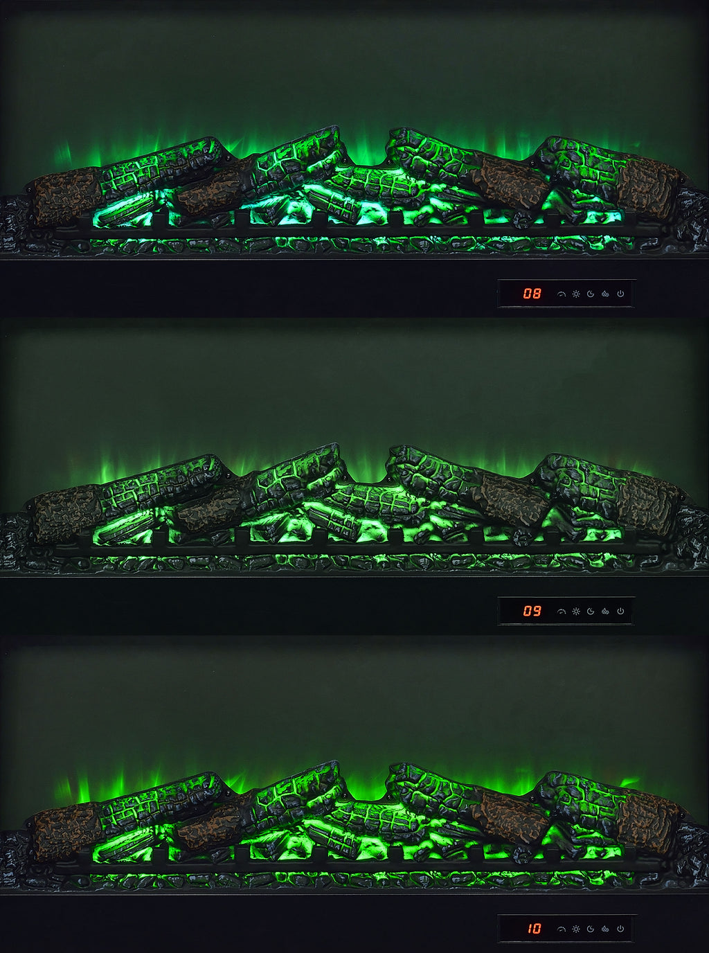 Rustic design meets modern warmth in this fireplace TV stand, featuring a realistic ember display and a convenient wireless remote. The dark pine finish and black metal accents frame a charming barn door aesthetic, with sliding doors that conceal adjustable shelving on each side. Thoughtfully designed for both function and style, this entertainment console includes cord management cutouts and supports TVs up to 80 inches with ease. Please note that there is no heat function included. Key Features: • Fireplace TV stand in dark pine finish with black metal accents and sliding barn-style doors • Center fireplace insert without heat function and glowing ember display for cozy ambiance • Wireless remote lets you control flame brightness, and power with ease • Each barn door slides open to reveal an adjustable shelf for concealed media storage • Cord management cutouts keep electronics organized and cables hidden from view • Supports flat panel TVs up to 80 inches and built from engineered wood and melamine veneer