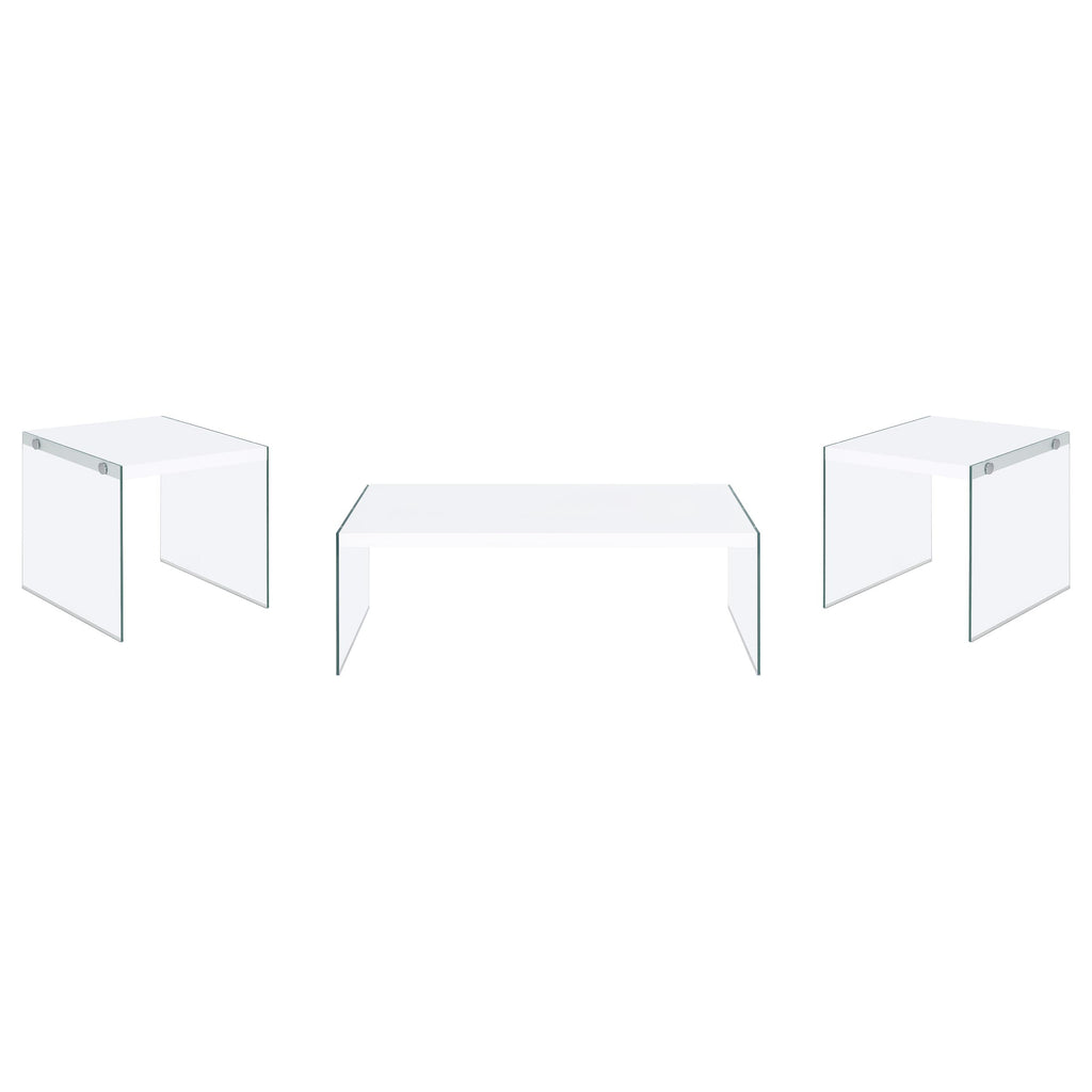 Transform your living space with this ultra-modern coffee table set, combining sleek style and functionality. Featuring engineered wood tops with a white high-gloss finish, these tables exude contemporary elegance. The clear tempered glass side panels create a floating effect while ensuring durability and stability. Perfect for modern living rooms, this set provides versatility for both daily use and entertaining, seamlessly complementing minimalist decor.