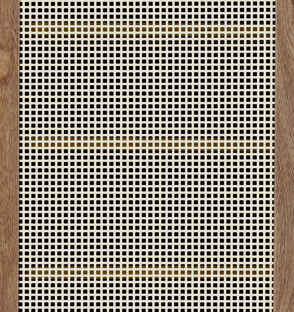 Enhance your entryway with this stylish shoe cabinet, pairing natural oak hues with modern, functional details. Crafted from engineered wood and laminate veneer, it features double doors framed by airy metal cane-style panels. Inside, an off-centered division and multiple adjustable shelves accommodate various shoe sizes, ensuring a personalized storage solution. Sturdy black metal legs anchor the piece, delivering a contemporary look that effortlessly streamlines your footwear collection. Key Features: • A chic shoe cabinet dressed in a natural oak finish • Airy metal cane-style door panels for ventilation and visual interest • Off-centered interior division and adjustable shelves for flexible storage • Engineered wood and laminate veneer construction ensures lasting quality • Supported by sturdy black metal legs for modern appeal • Perfect for organizing footwear in entryways, hallways, or closets